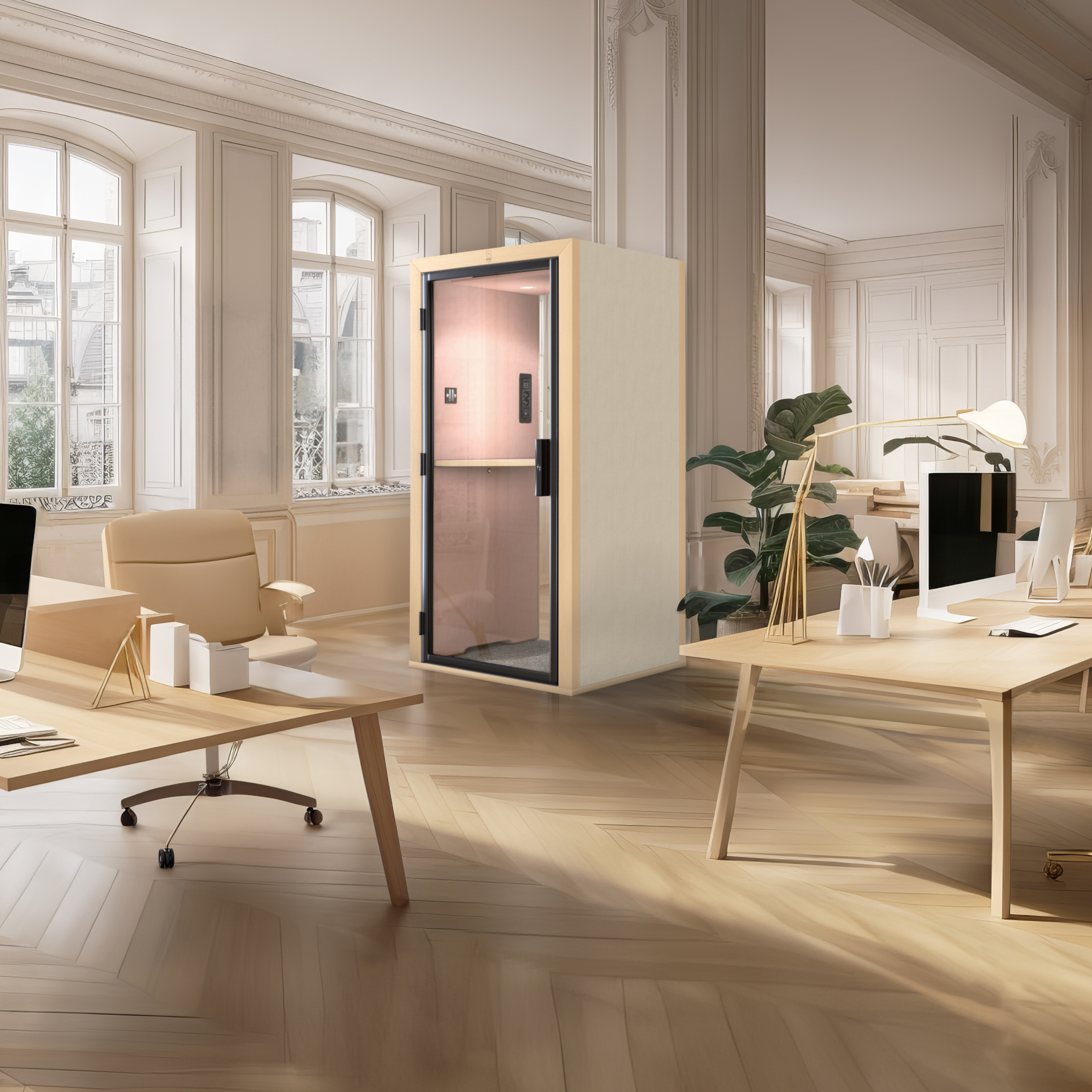 Alliant design intemporel et performance acoustique, la Solo Desk se distingue par la qualité de ses finitions et l’attention portée aux détails. Ses équipements intégrés — plan de travail ergonomique, ventilation discrète et éclairage soigné — garantissent une expérience d’usage à la fois pratique et agréable.