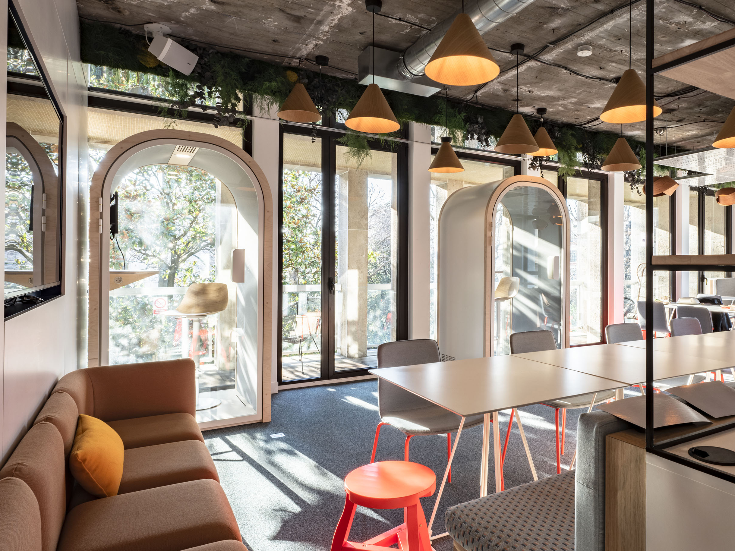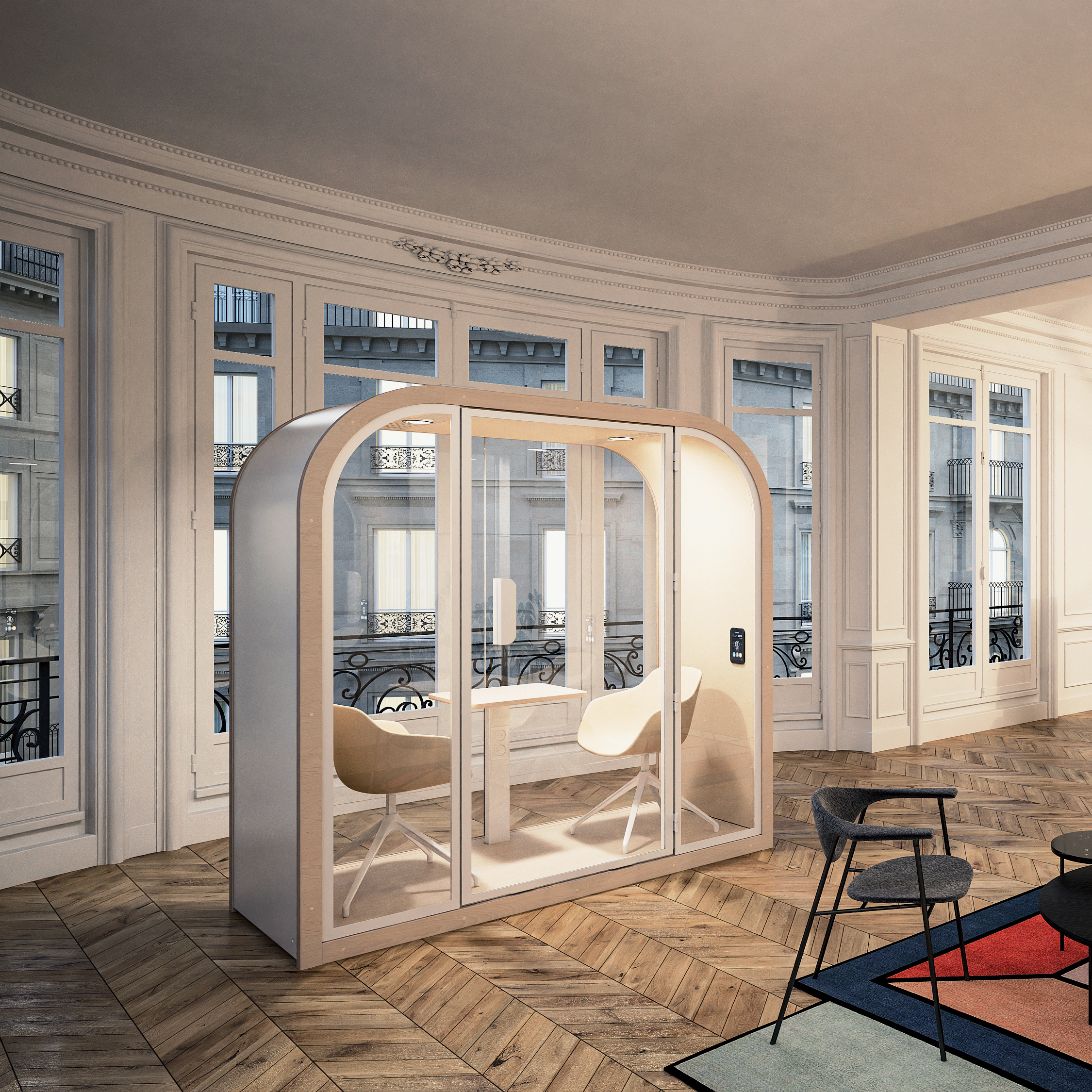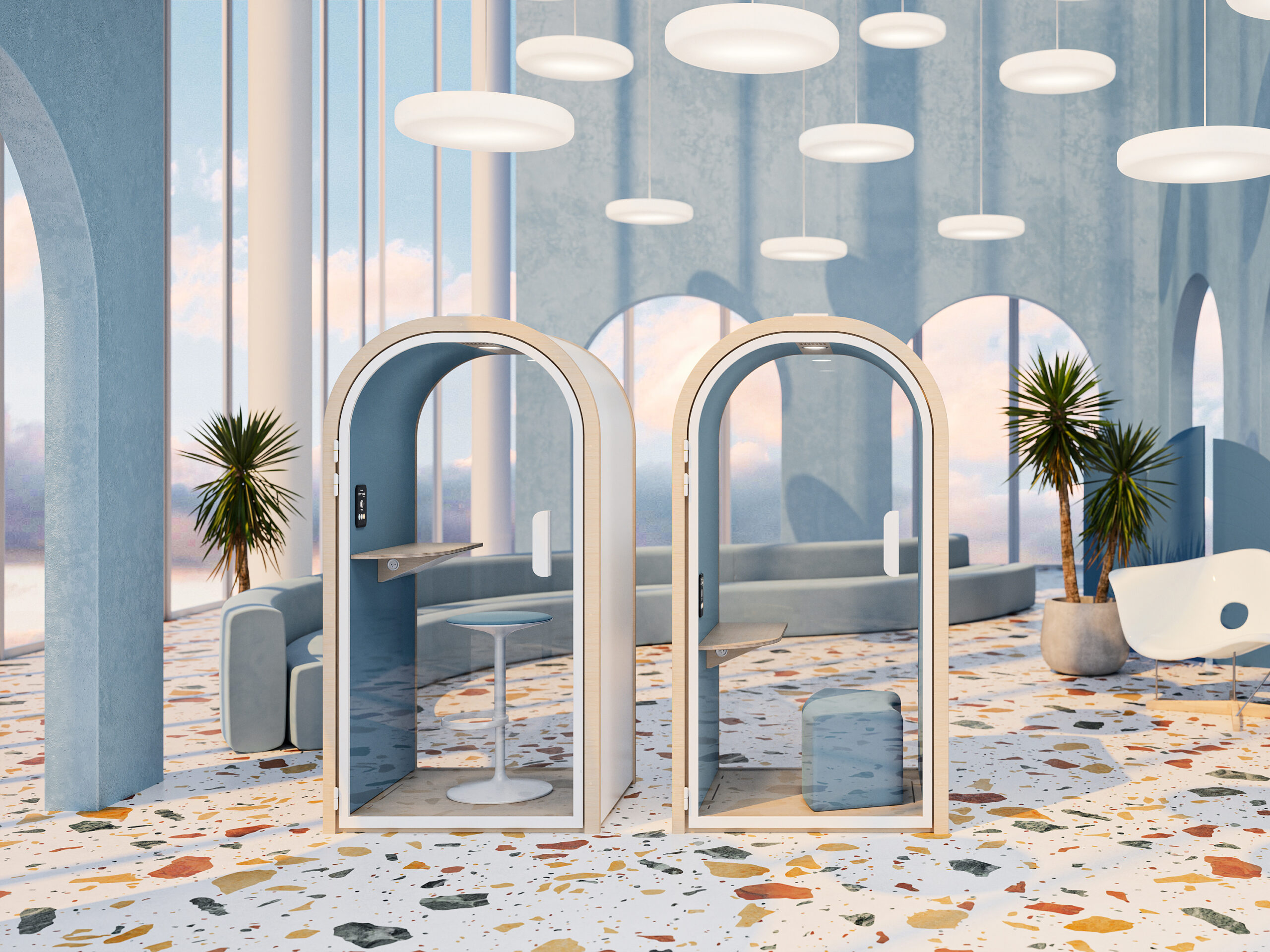Personnalisable aux couleurs de votre entreprise, la Arche Duo permet de choisir les finitions de vos cabines selon vos envies : tissu acoustique intérieur disponible dans plus de 36 coloris, mélamine et accessoires modulables pour un rendu à la fois esthétique et fonctionnel.