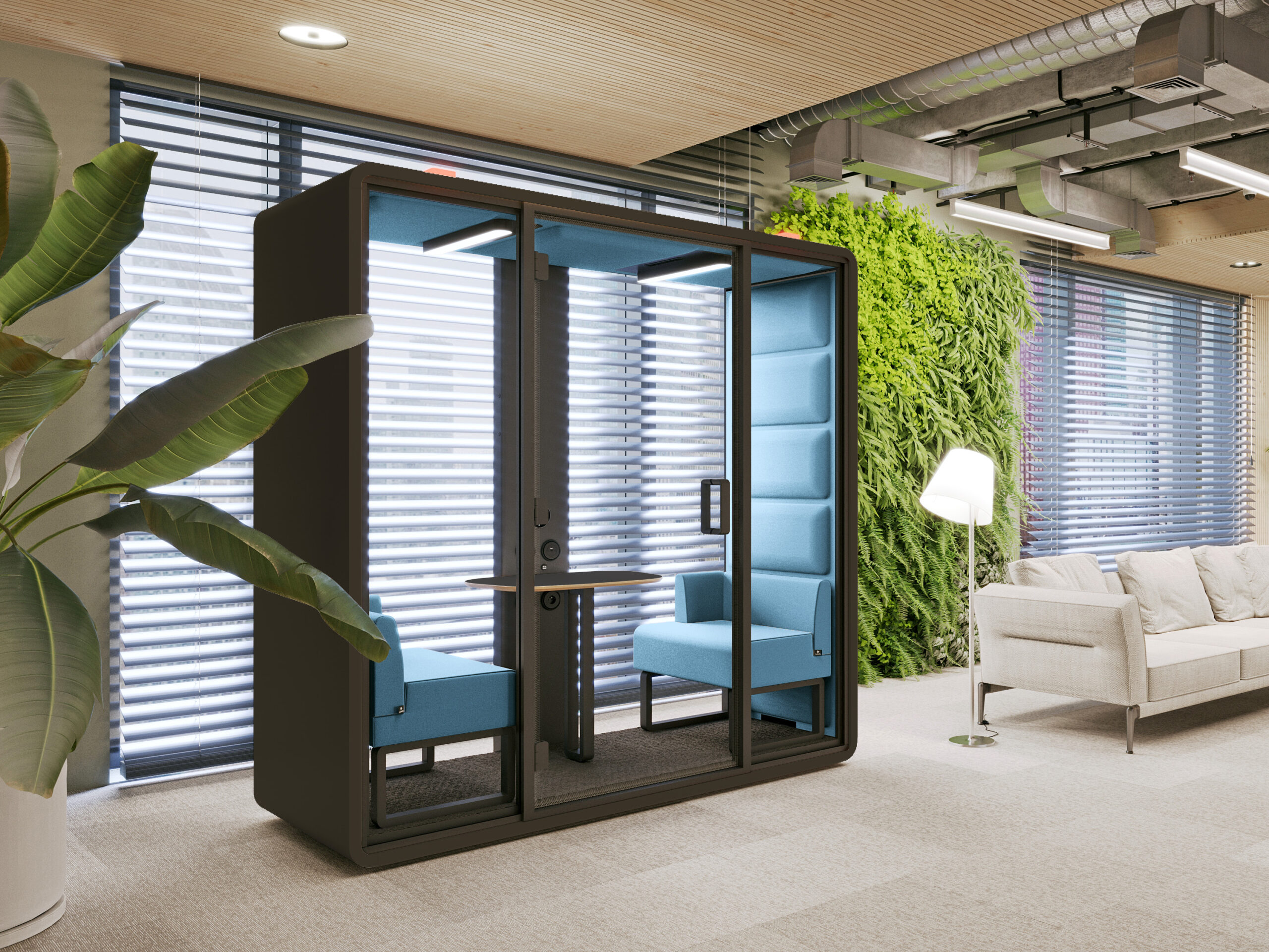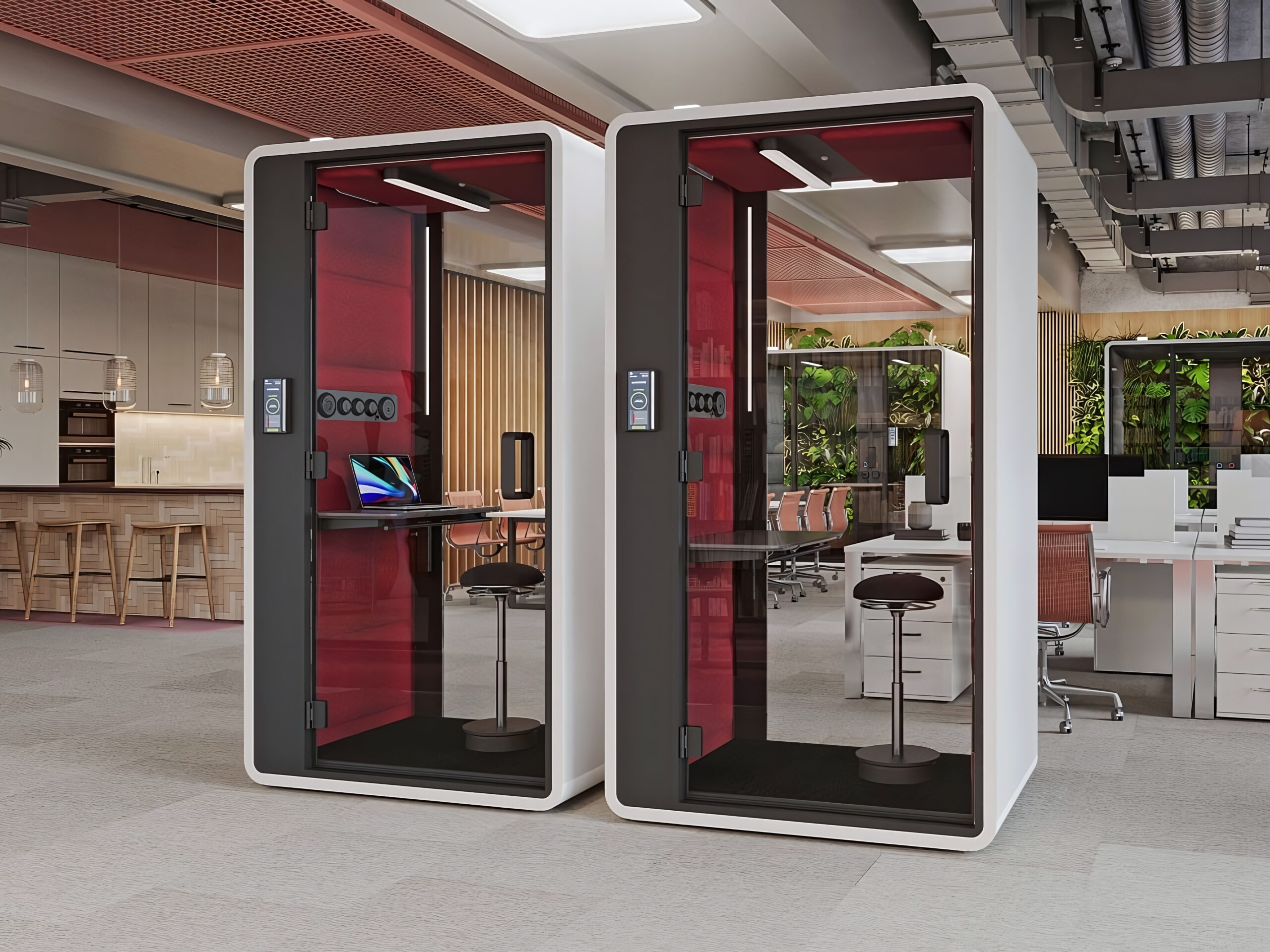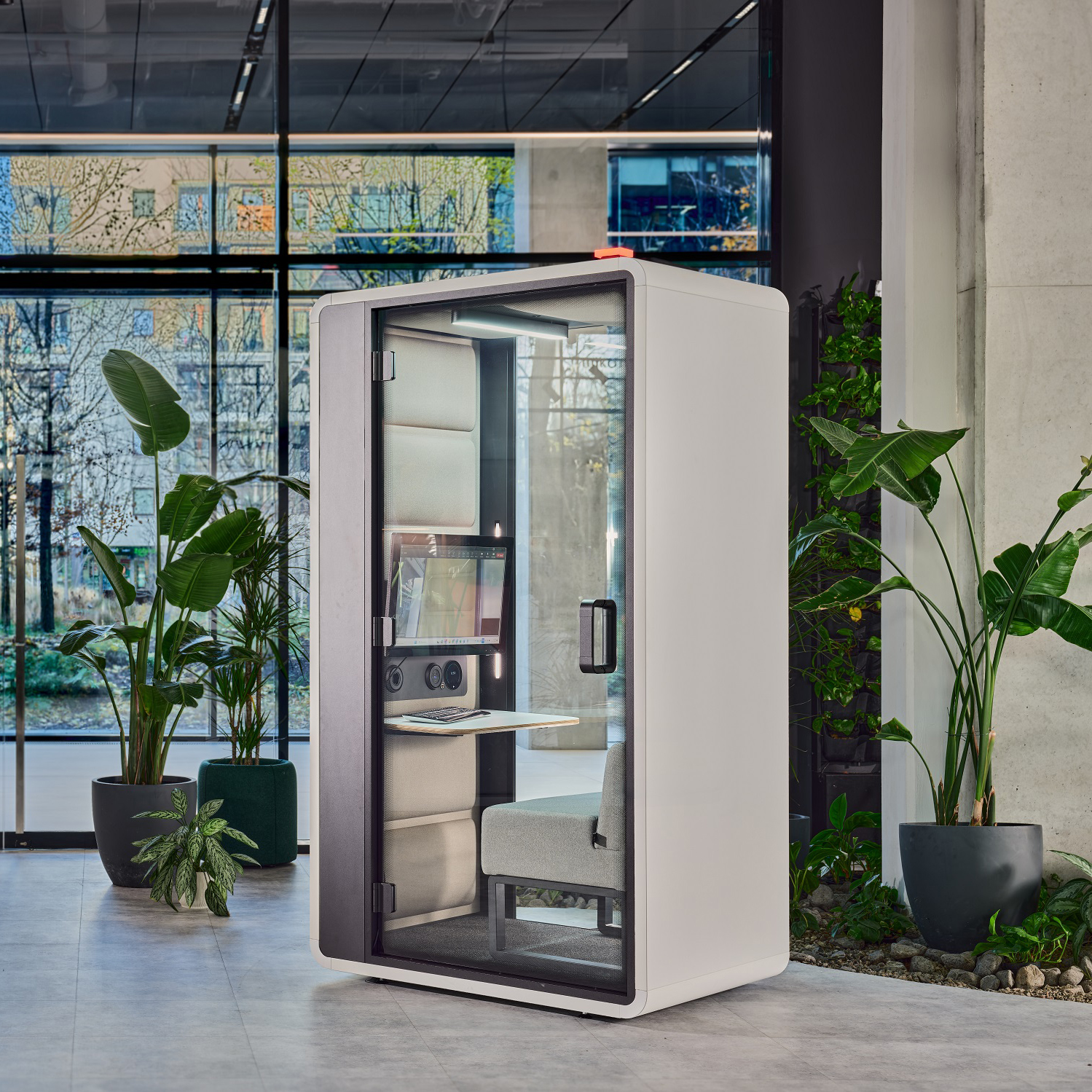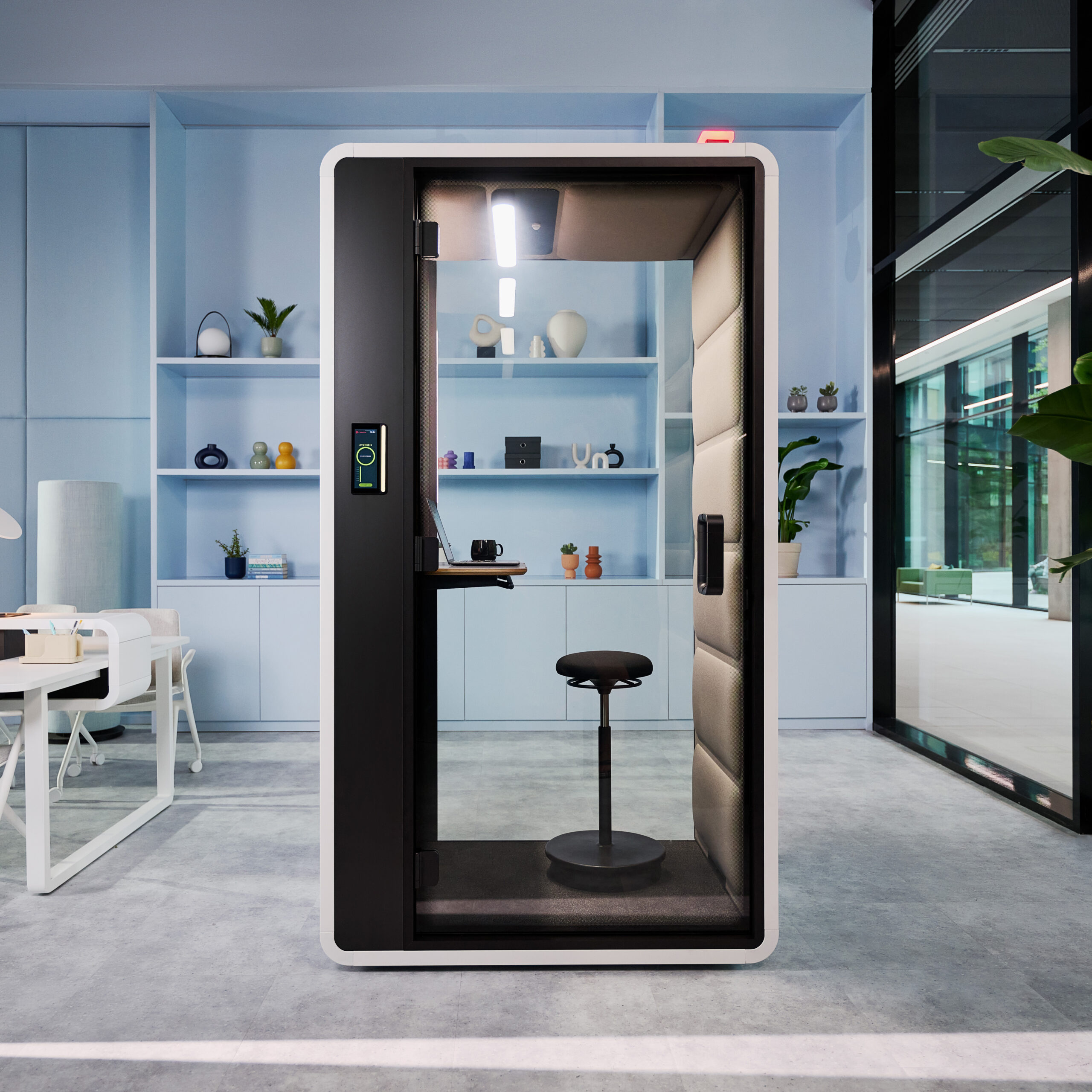 La HushOffice S redéfinit votre espace de travail : compacte et modulable, elle crée un cocon silencieux où vos appels, visioconférences et sessions de concentration se déroulent sans interruption. Chaque détail est pensé pour s’adapter à vos besoins, offrant un équilibre parfait entre confort et fonctionnalité.